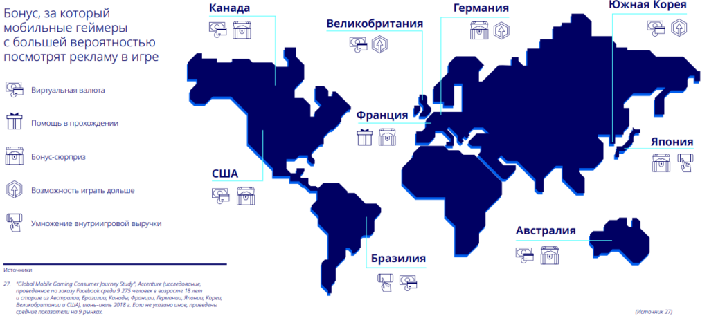 Игроки более положительно относятся к рекламе, за просмотр которой можно бесплатно получать бонусы. Например, внутриигровую валюту, различные «усилители» и пр.