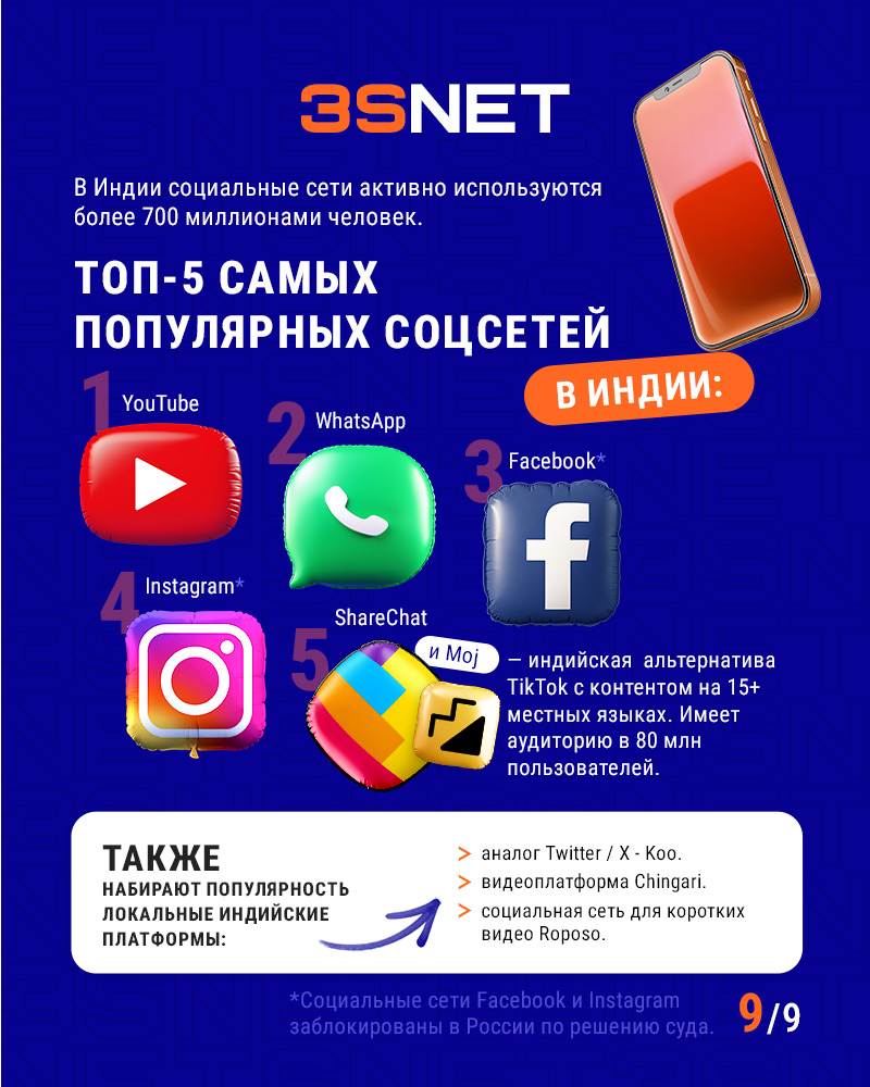 В Индии социальные сети активно используются более 700 миллионами человек.